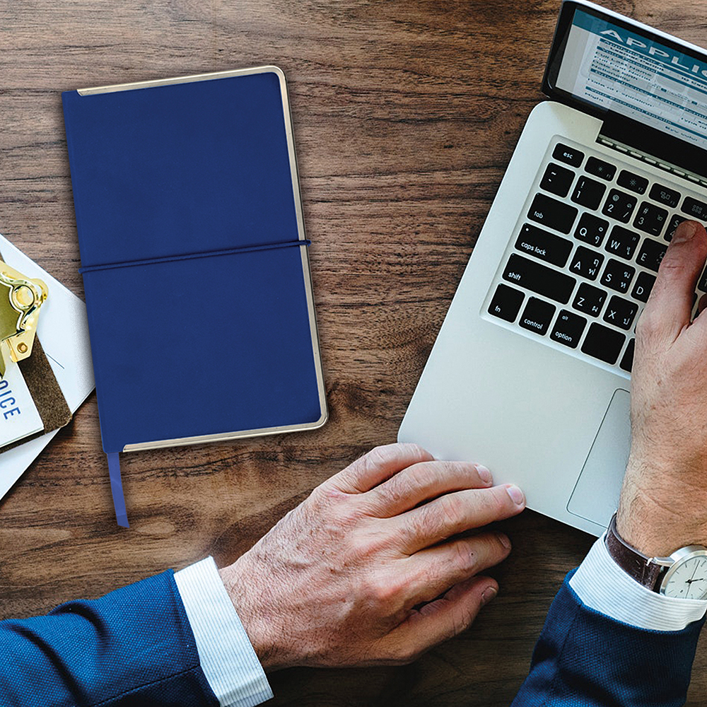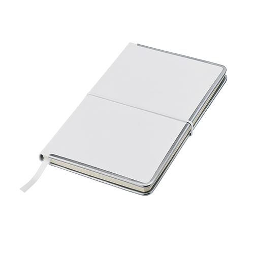 Com capa em PU, 91 folhas pautadas de 70g, elástico horizontal e fitilho incluídos à cor da capa.